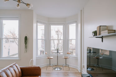 Breakfast nook with bistro table and Main Street views